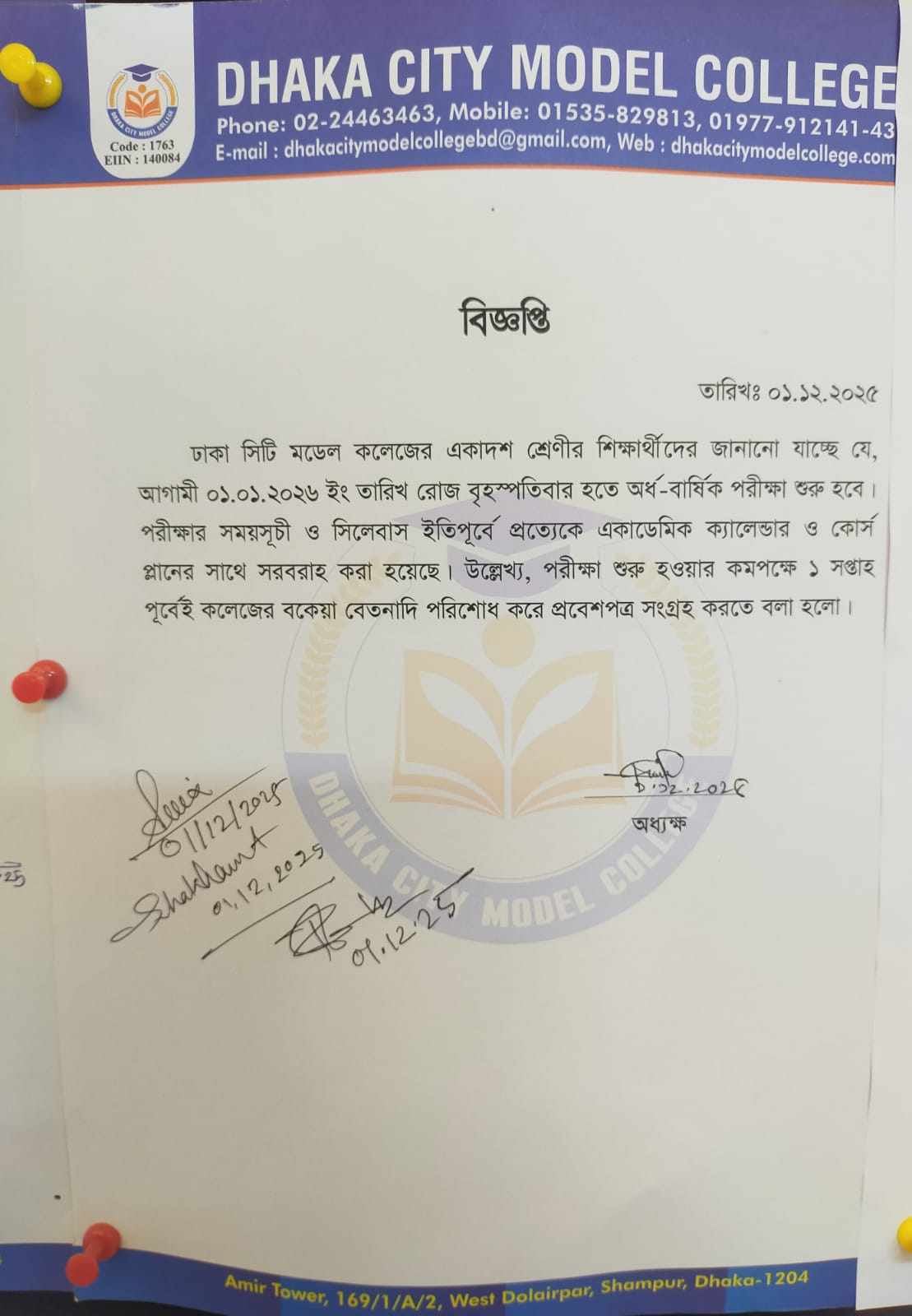 Half Yearly Exam Notice (H.S.C-1st Year-2025-26 )